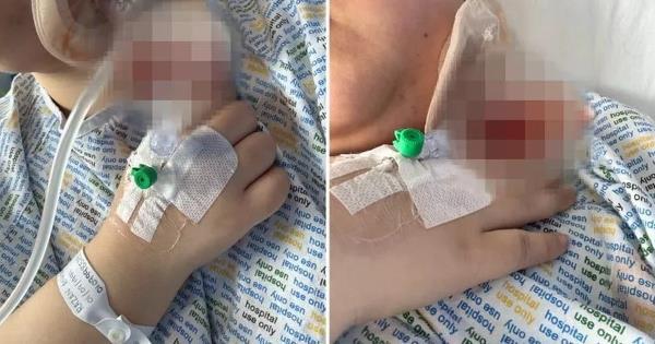 救护车将她送医后,被告知出现“严重”感染,需手术引流下颌周围的积液。医生在其颈部切开切口插入导管排出脓液。
