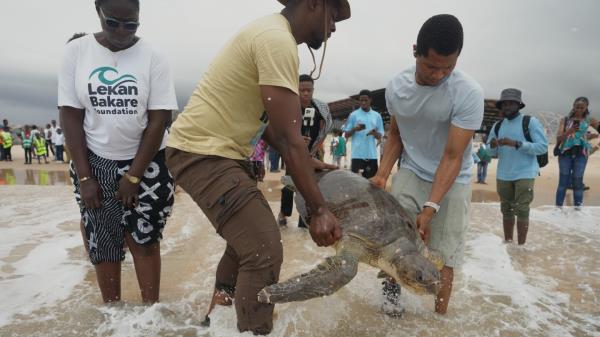在尼日利亚拉各斯的海岸线上,一场生命奇迹正在上演。当三只濒危海龟拖着伤痕累累的躯壳重返海洋时,围观的....